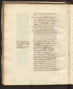 Although the Ambrosianus is a copy of the Mutinensis Estensis, this synonymic gloss represents a shortened version of a more extensive scholion and is placed directly on the corresponding lemma. The poetic text is accompanied by five further glosses, written in the interlinear space, and by two scholia.